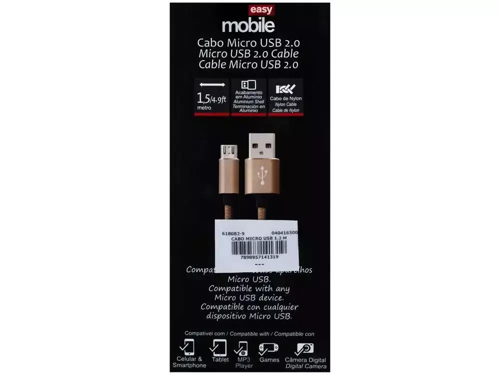 Com o Cabo Micro USB CBMICRO1MDD da Easy Mobile, você terá estilo e qualidade na hora de conectar seu celular aos dispositivos. O cabo possui 1,2 metros de comprimento e velocidade de transmissão de até 480mbps, sendo a escolha ideal para o dia a dia.