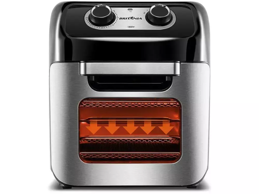 Junte praticidade e saúde com a Fritadeira Elétrica Britânia Oven BFR2300P. Este modelo 3 em 1 é forno e air fryer, permitindo assar, fritar sem óleo e reaquecer. Com capacidade total de 12 litros, é perfeita para preparar refeições para toda a família, desde o café da manhã até o jantar. Esta versão opera em 220V.
