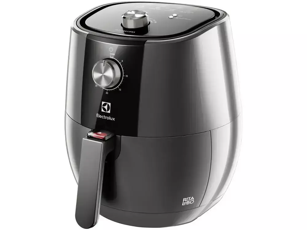 Faça comida mais saudável e saborosa com a Grand AirFryer 4 Litros Electrolux (EAF30), assinada por Rita Lobo. Com 1400W de potência e cesto de 4L, você prepara porções maiores com até 90% a menos de gordura e 50% a menos de calorias¹². Esta versão opera em 110V.