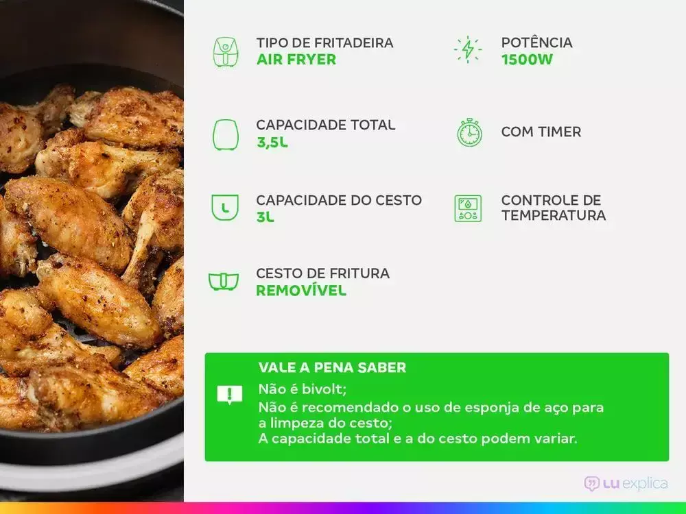 | Itens Inclusos | 1 Fritadeira Elétrica, 1 Manual de Instruções |