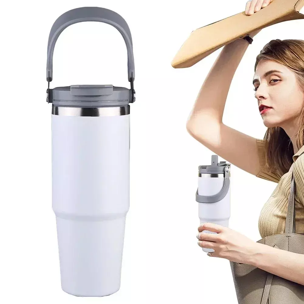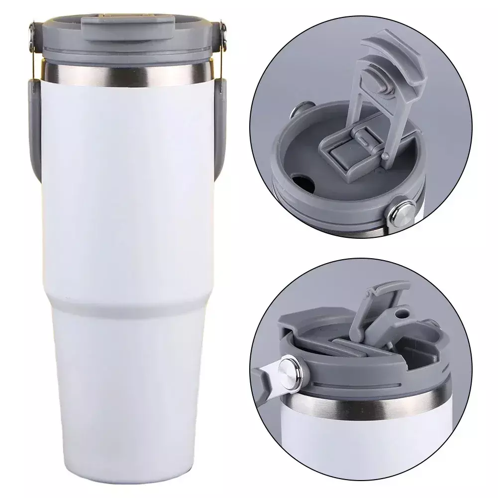Garrafa Térmica de Aço Inoxidável 900ml – Caneca de Café Isolada com Alça para Carro