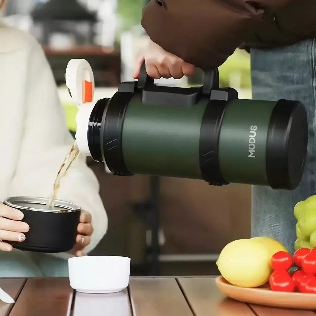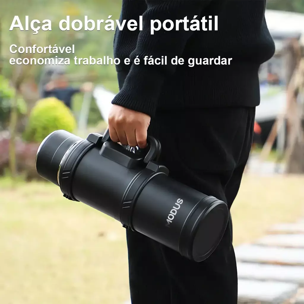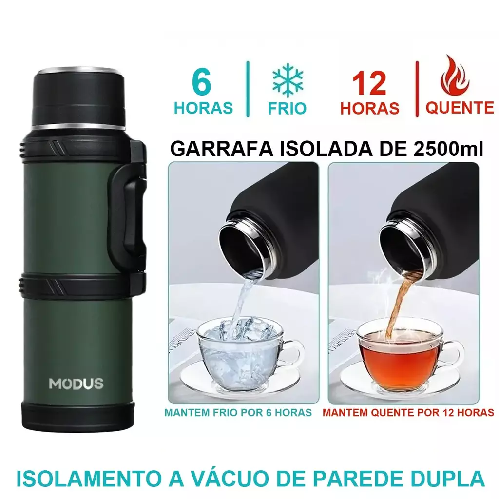 Com a Garrafa Térmica de 2,4 Litros, você não precisa se preocupar com água durante suas atividades ao ar livre. Fabricada com tecnologia de vácuo de camada dupla e aço inoxidável 304, ela mantém o conteúdo quente ou frio por 6 a 12 horas.
