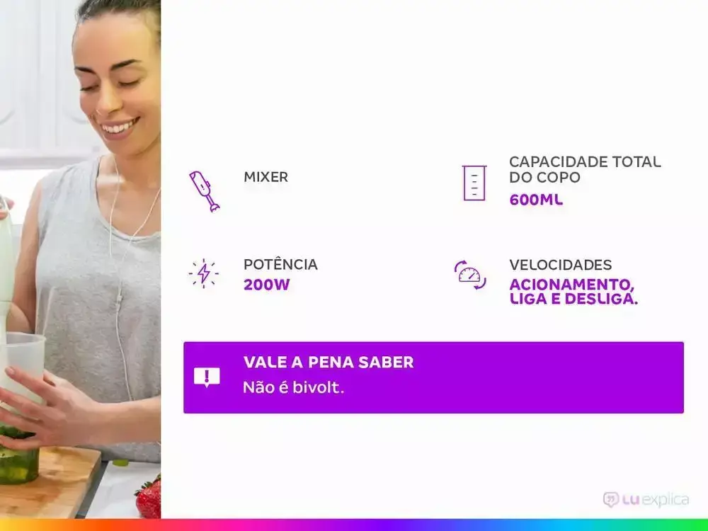 | Itens Inclusos | 1 Mixer, 1 Copo com Tampa |