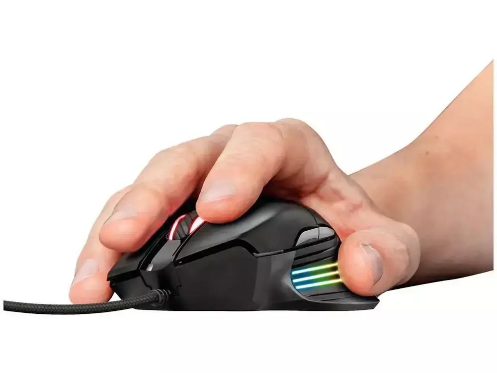Luzes, velocidade e ação com o mouse gamer RGB Xidon da Trust, ele foi desenvolvido para a ação correta do mouse. Com um sensor óptico, uma resolução de 10.000 DPI e iluminação LED RGB completa, você poderá jogar sério. Com sensor óptico e um DPI de até 10.000, você será mais rápido que um raio. O Trust GXT 940 Xidon RGB Gaming Mouse é feito especialmente para a velocidade. Use as configurações de DPI mais altas para explorar rapidamente o ambiente ao redor ou reduza a velocidade para fazer disparos de atiradores precisos. O design simplificado do Trust GXT 940 Xidon RGB Gaming Mouse foi desenvolvido para operação confortável - hora após hora. A sua forma proporciona um conforto ideal e o apoio para o polegar texturizado com revestimento de borracha melhora a sua aderência. O design simplificado do Xidon é amplificado por RGB colorido para iluminar sua experiência de jogo. A iluminação RGB totalmente ajustável vem em mais de 16 milhões de cores e vários efeitos - da respiração ao salto RGB. Selecione seu modo de luz favorito e salve suas predefinições com o software incluído. Você sabe como ganhar o jogo, então crie as configurações do seu jeito com o software avançado incluído. Você pode programar os botões, macros e salvar suas preferências de efeito de luz; entre na zona vencedora no momento em que conectar o mouse.