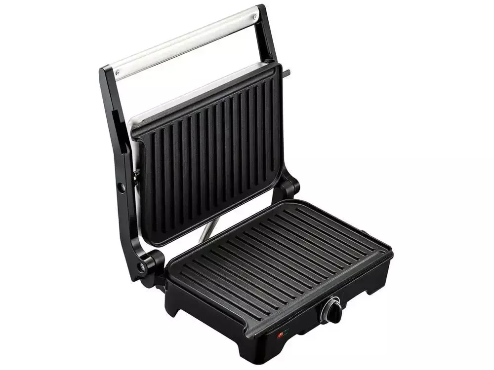 | Recursos | Controle de temperatura, Abertura 180°, Bandeja coletora de gordura, Alça fria |